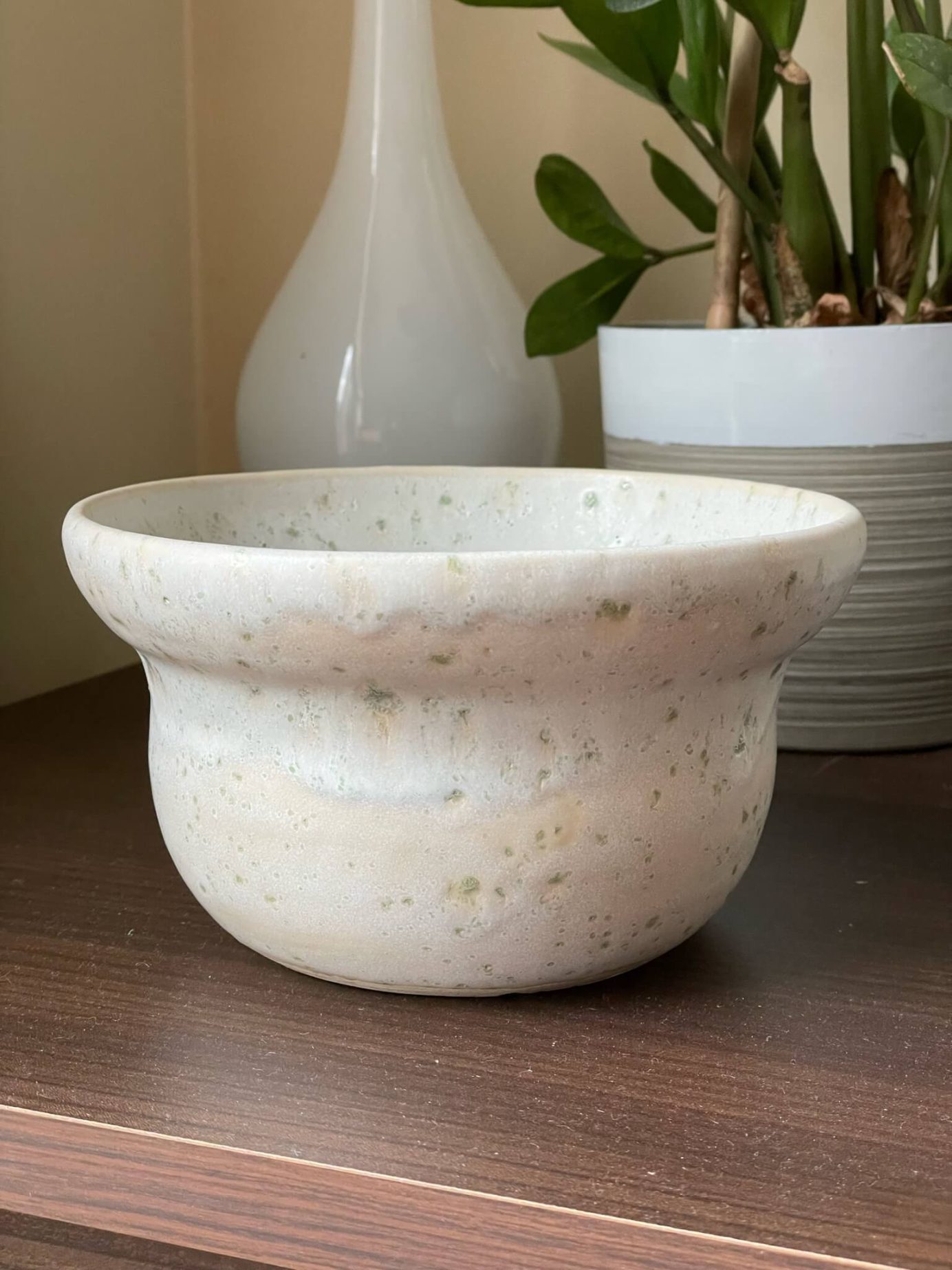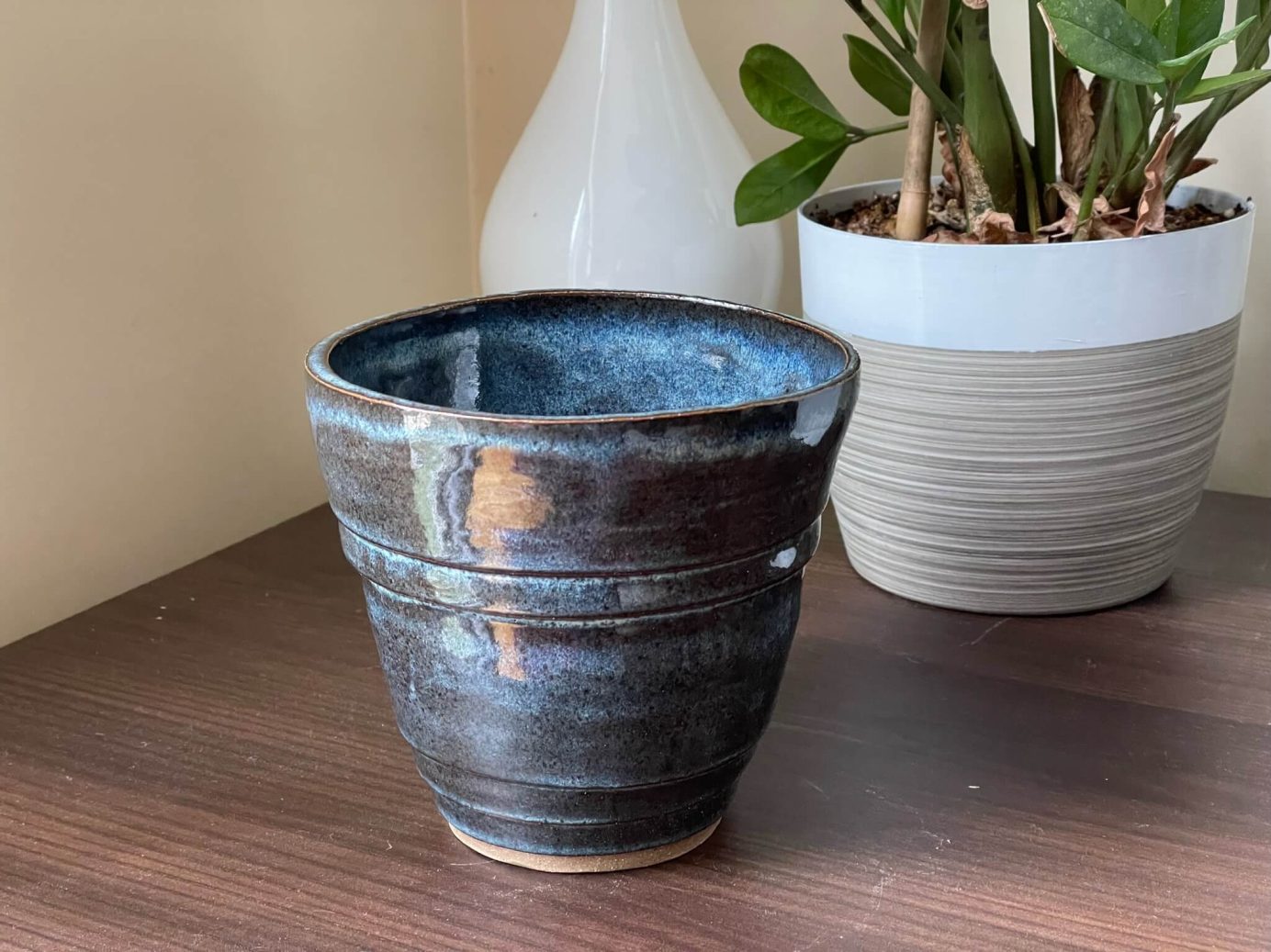 Large planter wheel thrown with Speckled Brown stoneware, with built in water catcher.