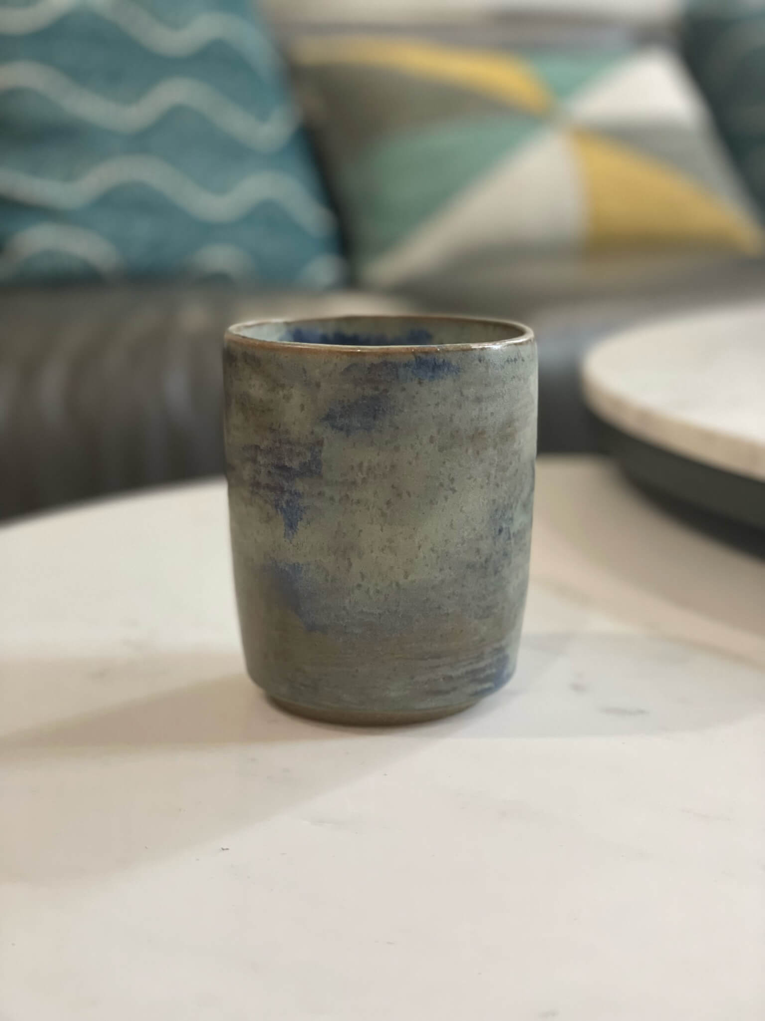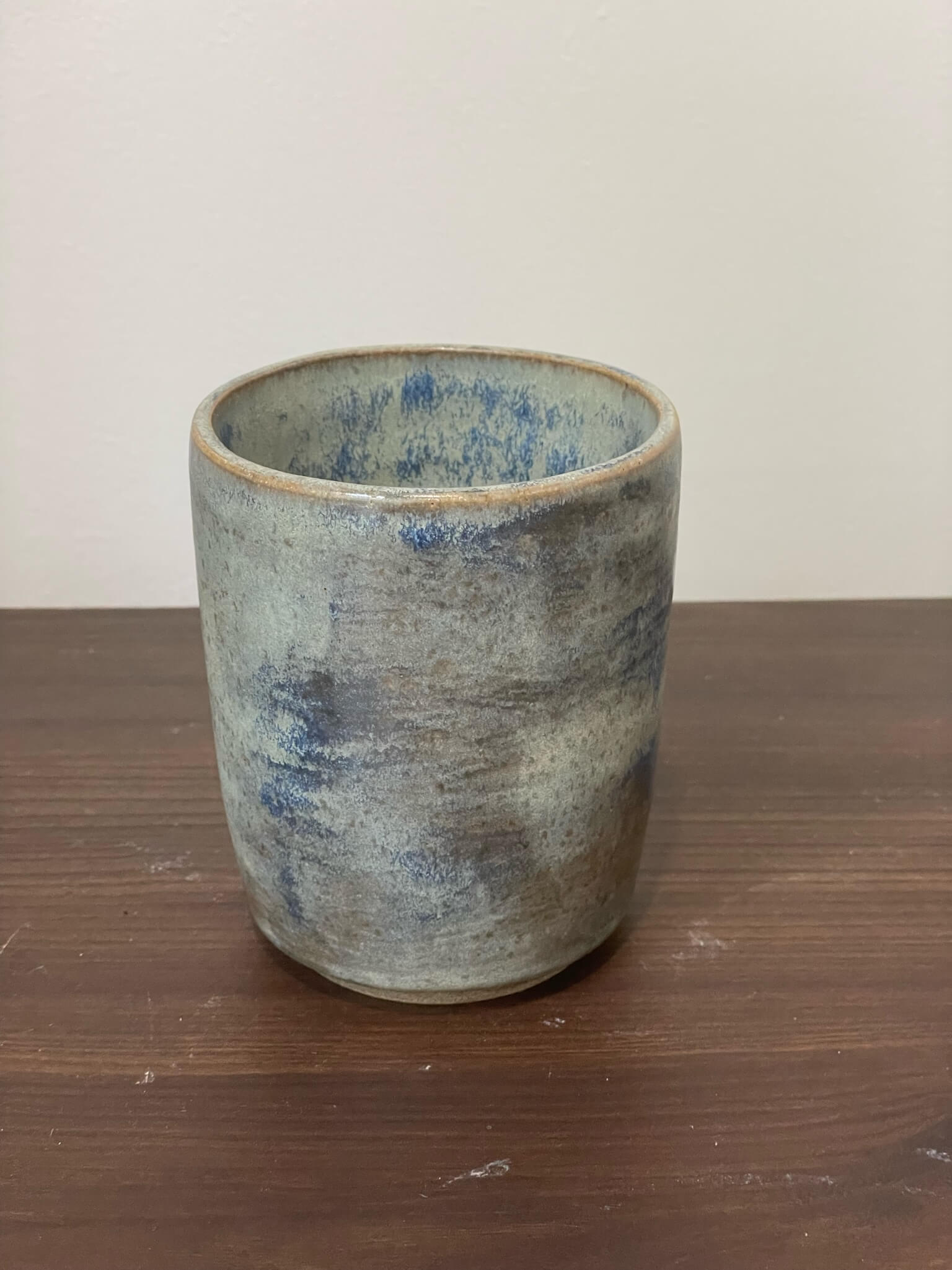 Matte Teal Pencil HolderA tall dish to be used as a pencil / office supplies holder. It's simple but has a really rich glaze effect. A marbled swirl of teals, tans, and blues.Share this piece: