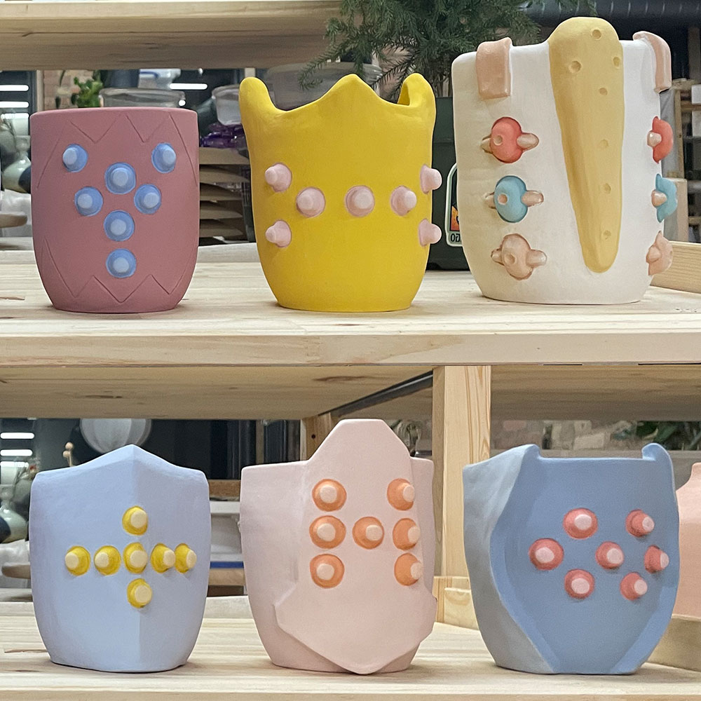 A set of 6 large mugs that's design was inspired by the 6 Regi Pokémon. This was a very early on project for me in my ceramics career. It was my first attempt to make a consistent set, as well as mixing throwing and hand building together. I was very happy with the process and I learned a lot, despite the end result not going as planned! Read more about my full creation process below.