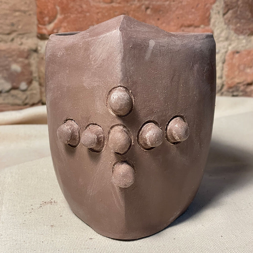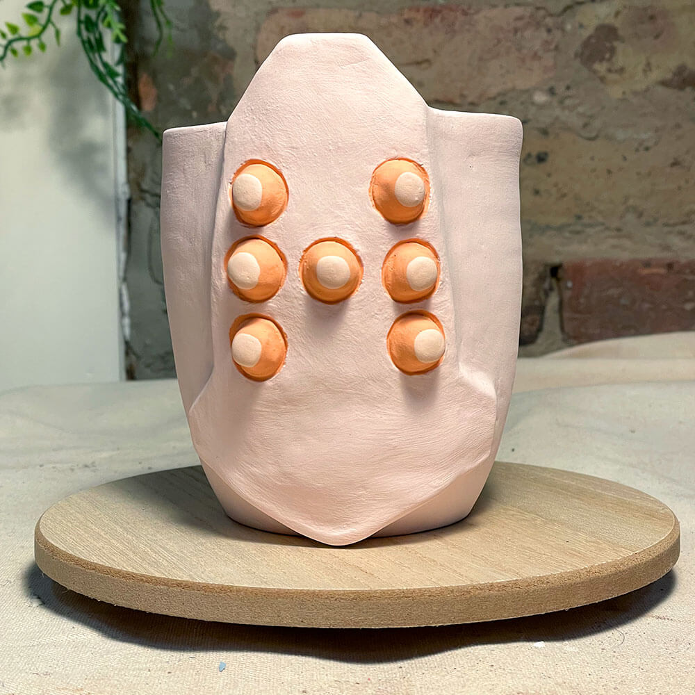 I wanted each piece to have a custom design based on the form of the 6 Regi Pokémon (see reference here). I then hand-built onto the forms while they were still soft to create designs inspired by the photo. I used a combination of sculpting additional pieces onto the forms, as well as carving different patterns into it.